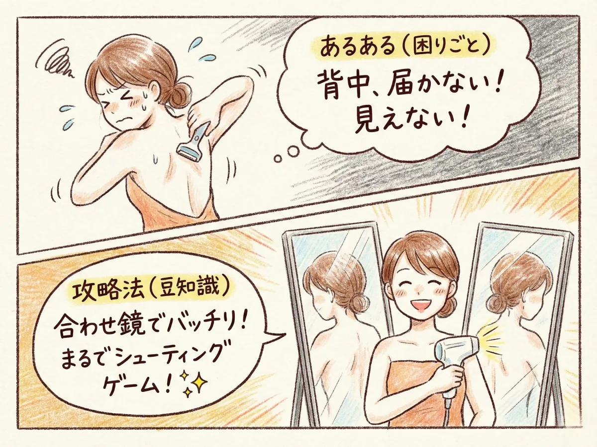 1. 背中のセルフ脱毛は「合わせ鏡」で死角をゼロにすることが最重要!